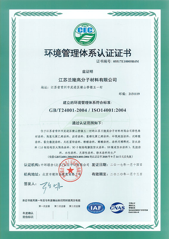 Environmental Management System Certificate (Polymer Company)